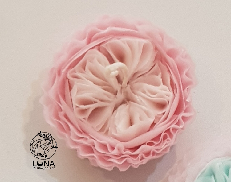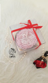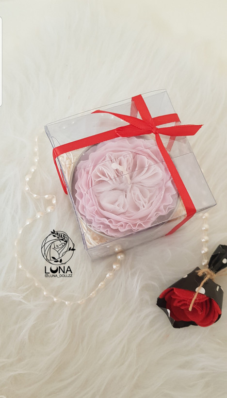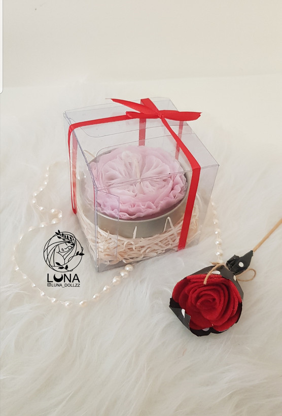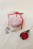 شمع گیفت داخل جعبه طلقی با گل ژولیت دورنگ صورتی
