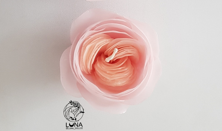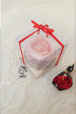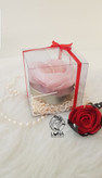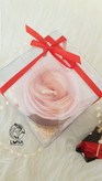 شمع گیفت داخل جعبه طلقی با گل پیچ رز دو رنگ