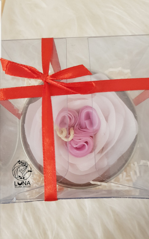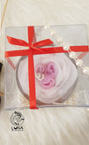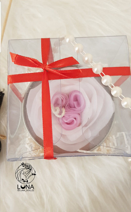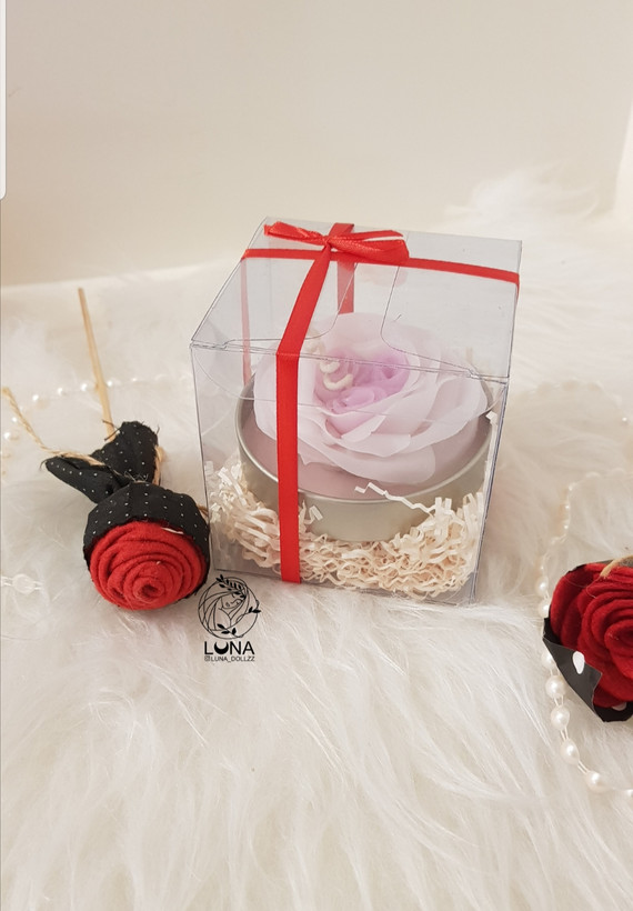 شمع گیفت داخل جعبه طلقی با گل رز روسی دو رنگ