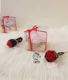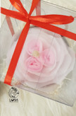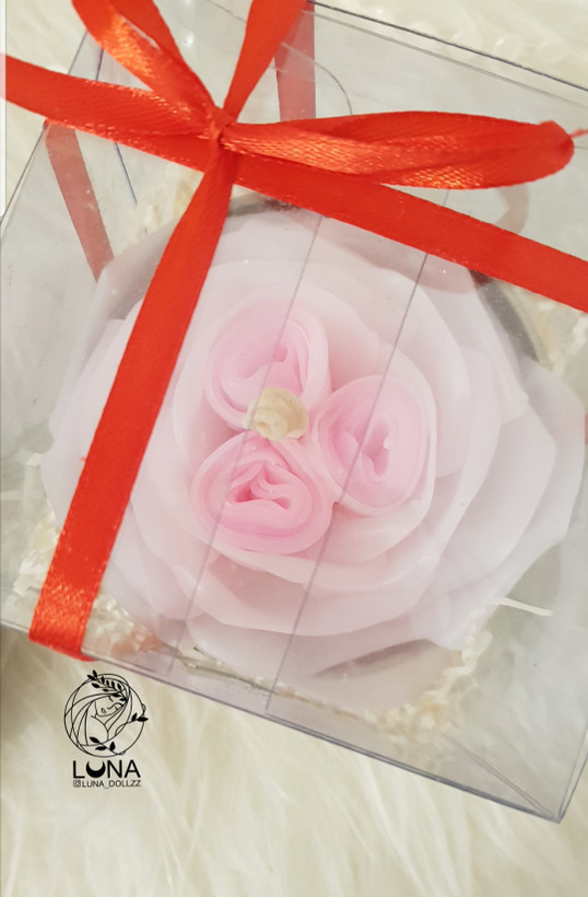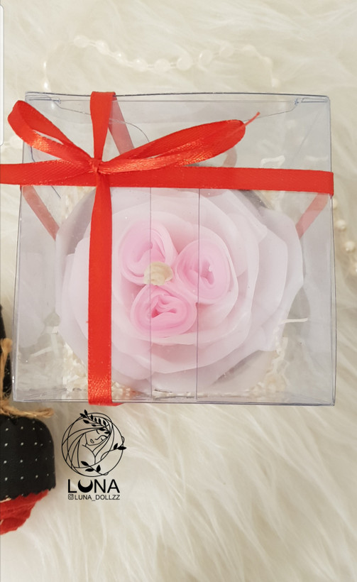 شمع گیفت داخل جعبه طلقی با گل رز روسی صورتی
