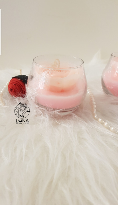 شمع دستساز گل آلاله گلبهی با شات خمره ای شیشه ای