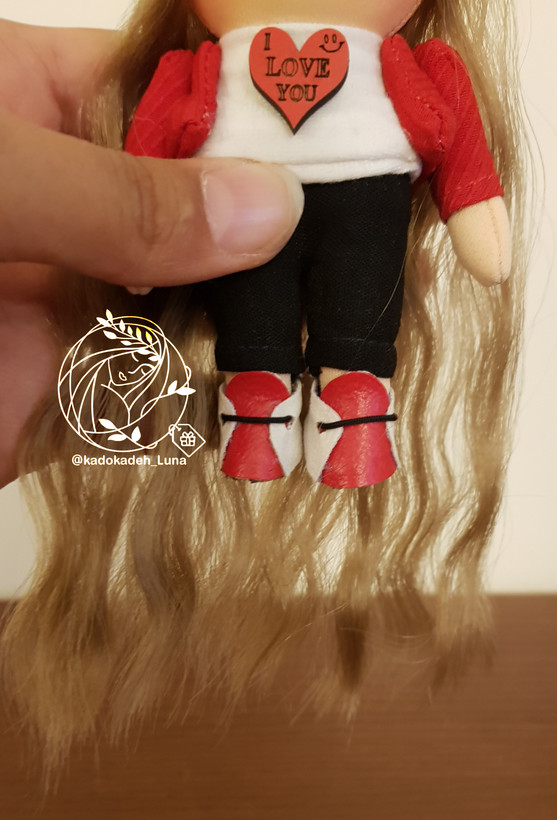 روی بلوز قلب چوبی قرمز چسبیده شده
