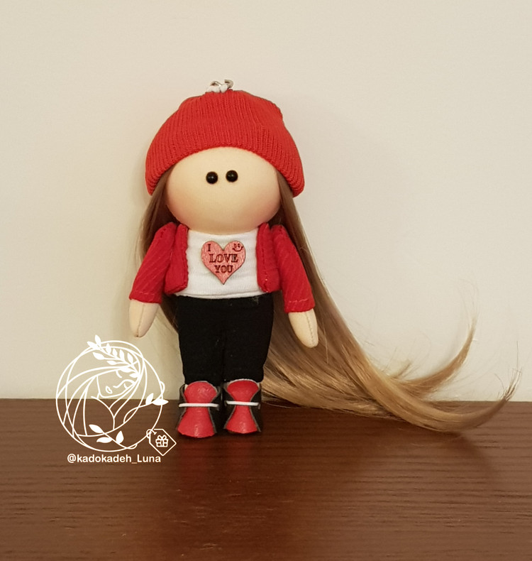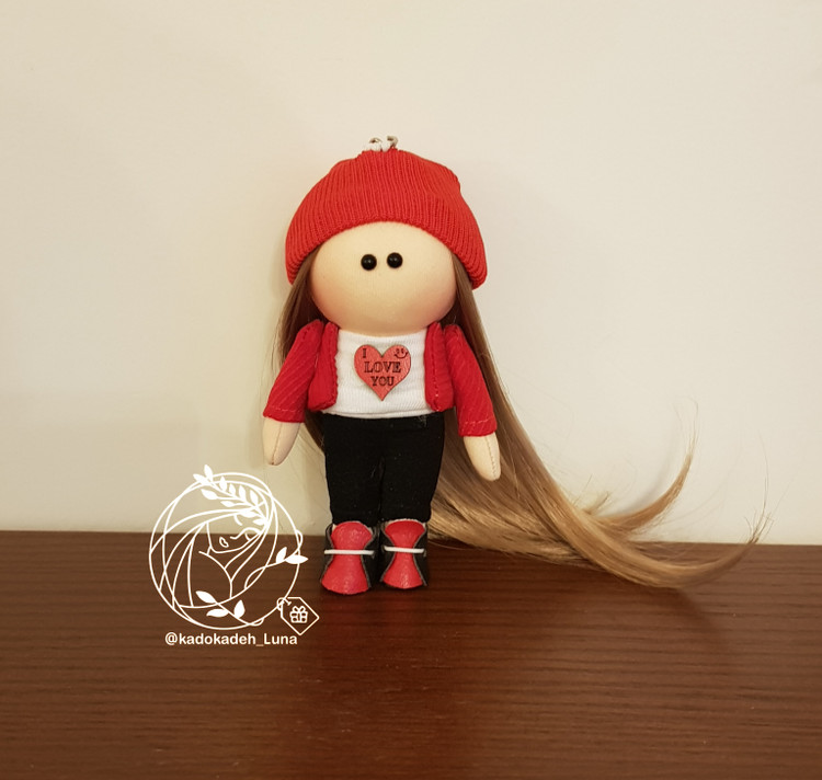 کلاه کشبافت قرمز، کت قرمز، بلوز سفید، شلوار جین تمام مشکی