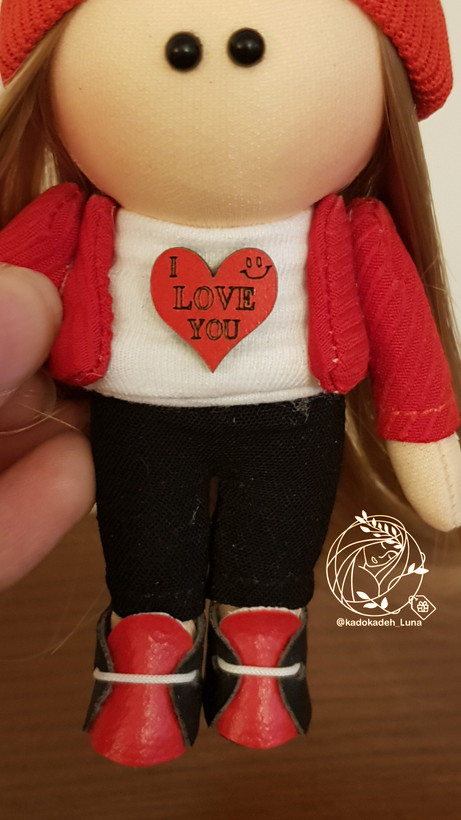 روی بلوز قلب چوبی قرمز چسبیده شده