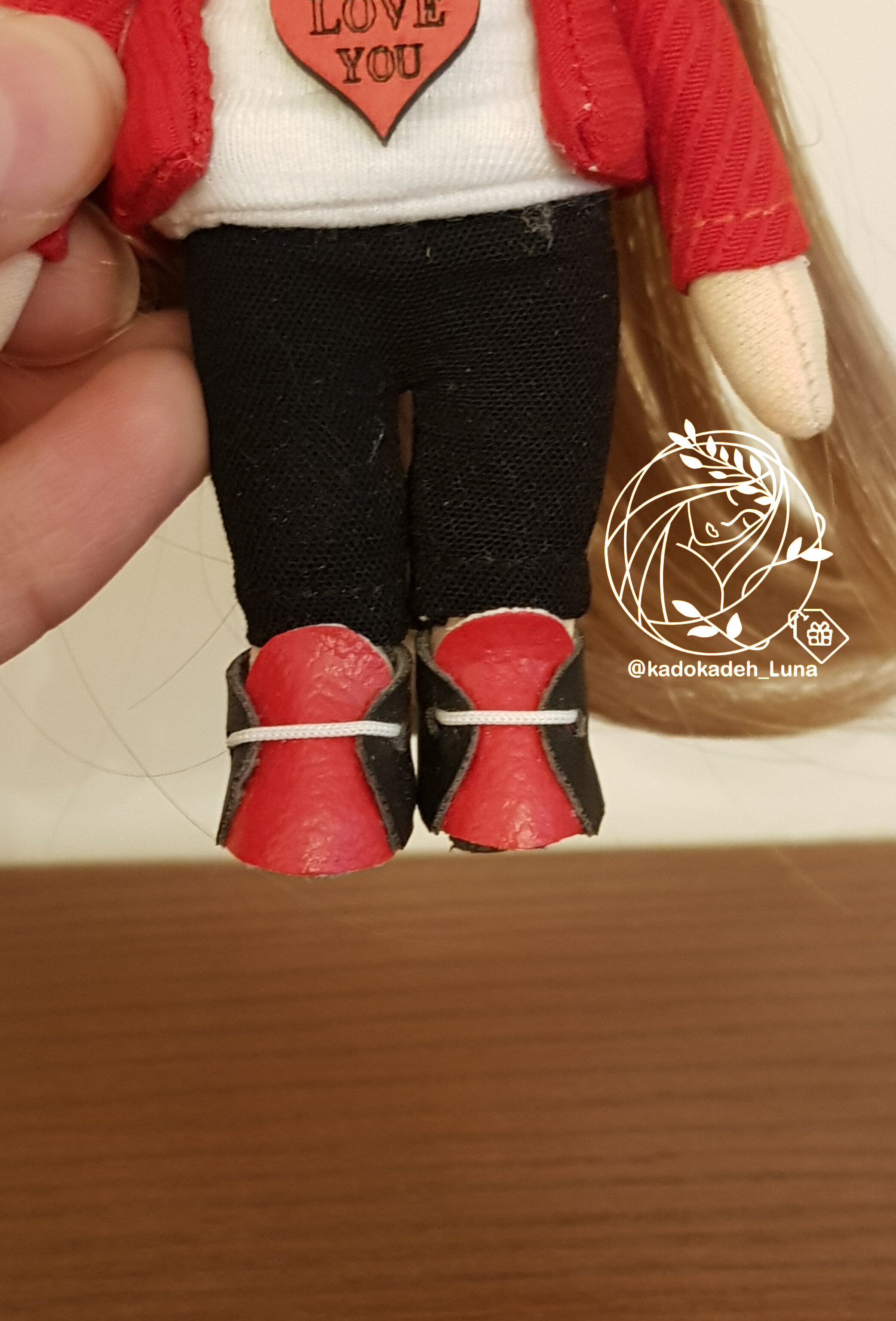 کلاه کشبافت قرمز، کت قرمز، بلوز سفید، شلوار جین تمام مشکی