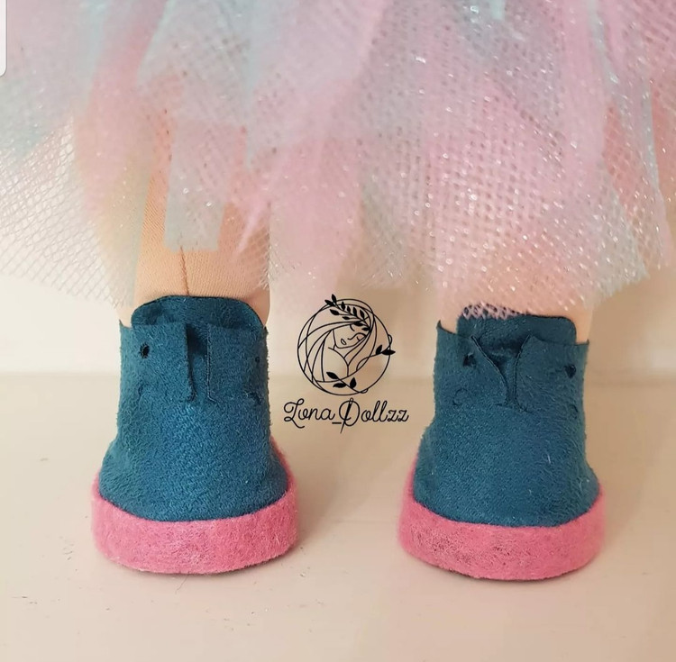کفش از اشبالت کله غازی پررنگ و نمد صورتی برای دور کفش ساخته شده است