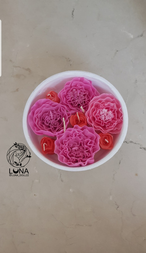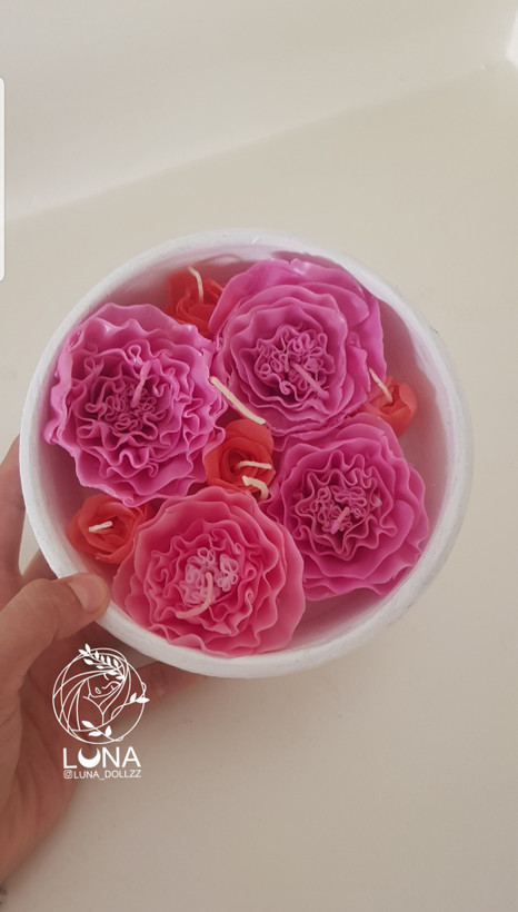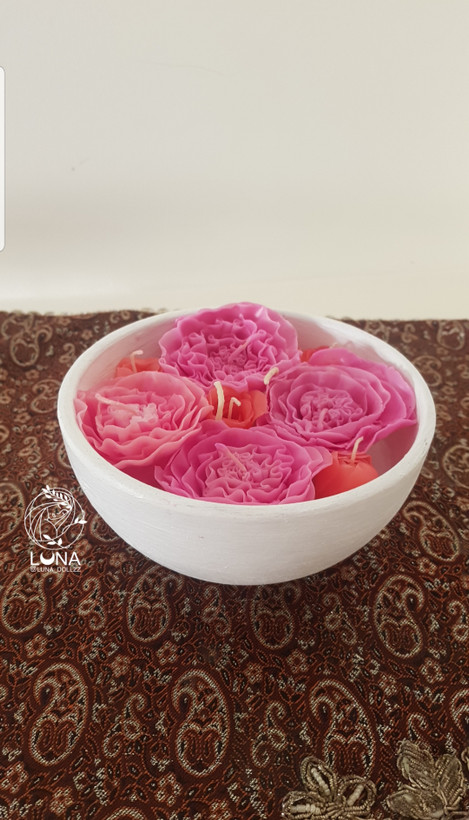 شمع دستساز گل مینیاتوری با کاسه سفالی بزرگ